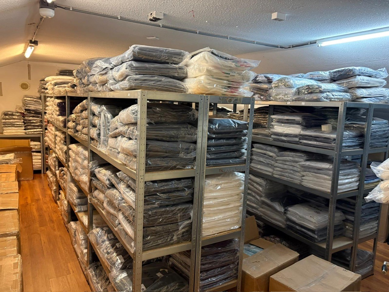 In de loods werden naar schatting tienduizenden vervalste kledingstukken en accessoires gevonden. Het gaat om namaakproducten van luxe merken als Hermès, Jacob Cohën, Moncler, Dior, Stone Island en Casablanca. Volgens de autoriteiten bestaat het vermoeden dat de partij bestemd was voor distributie naar meerdere verkooppunten.